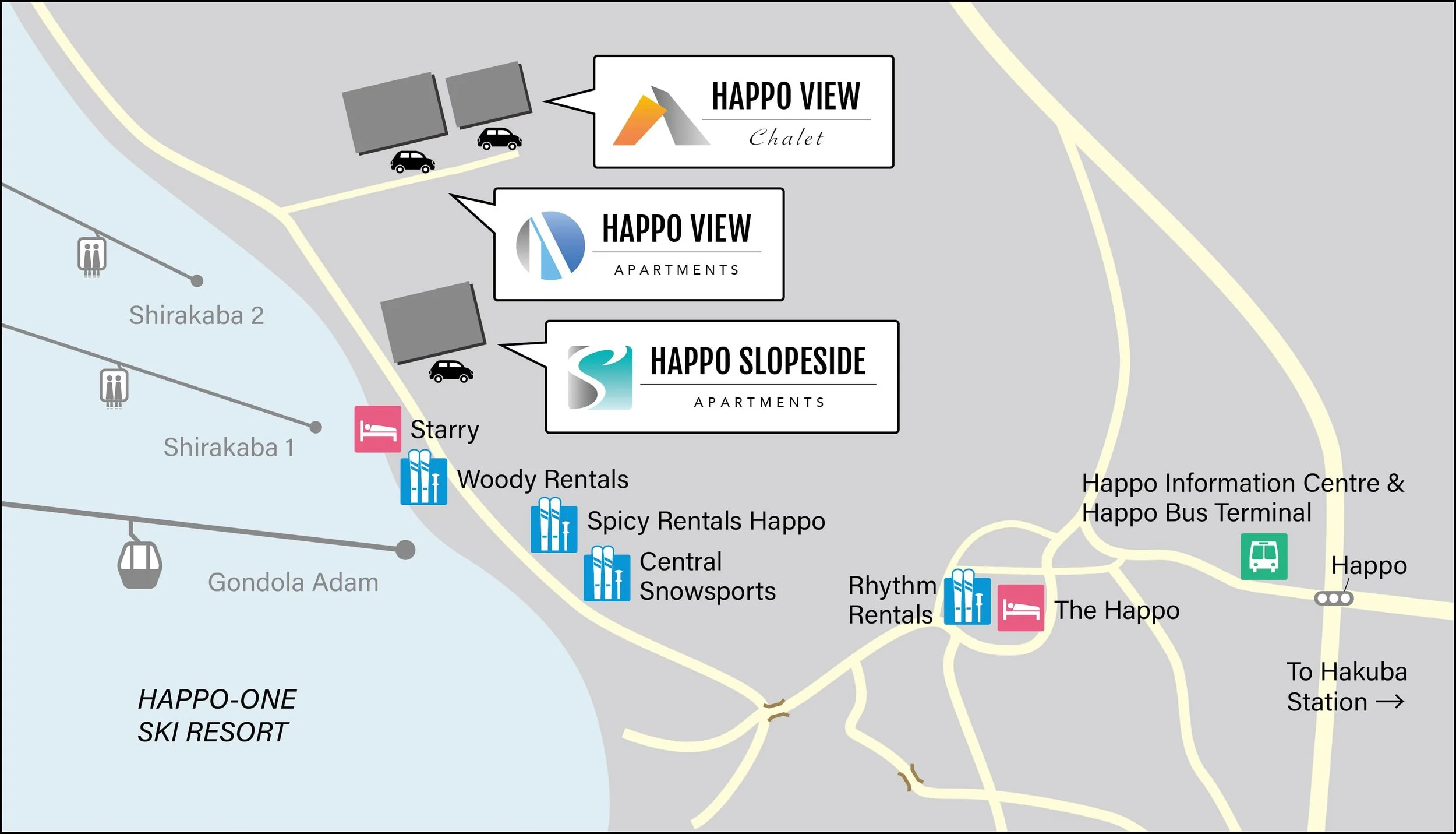 Take the Kanetsu Expressway to the Fujioka J.C.T and head towards Nagano on the Joshinetsu Expressway. Exit at the Nagano Interchange and follow the Hakuba Nagano Olympic Road to Hakuba. 4hrs